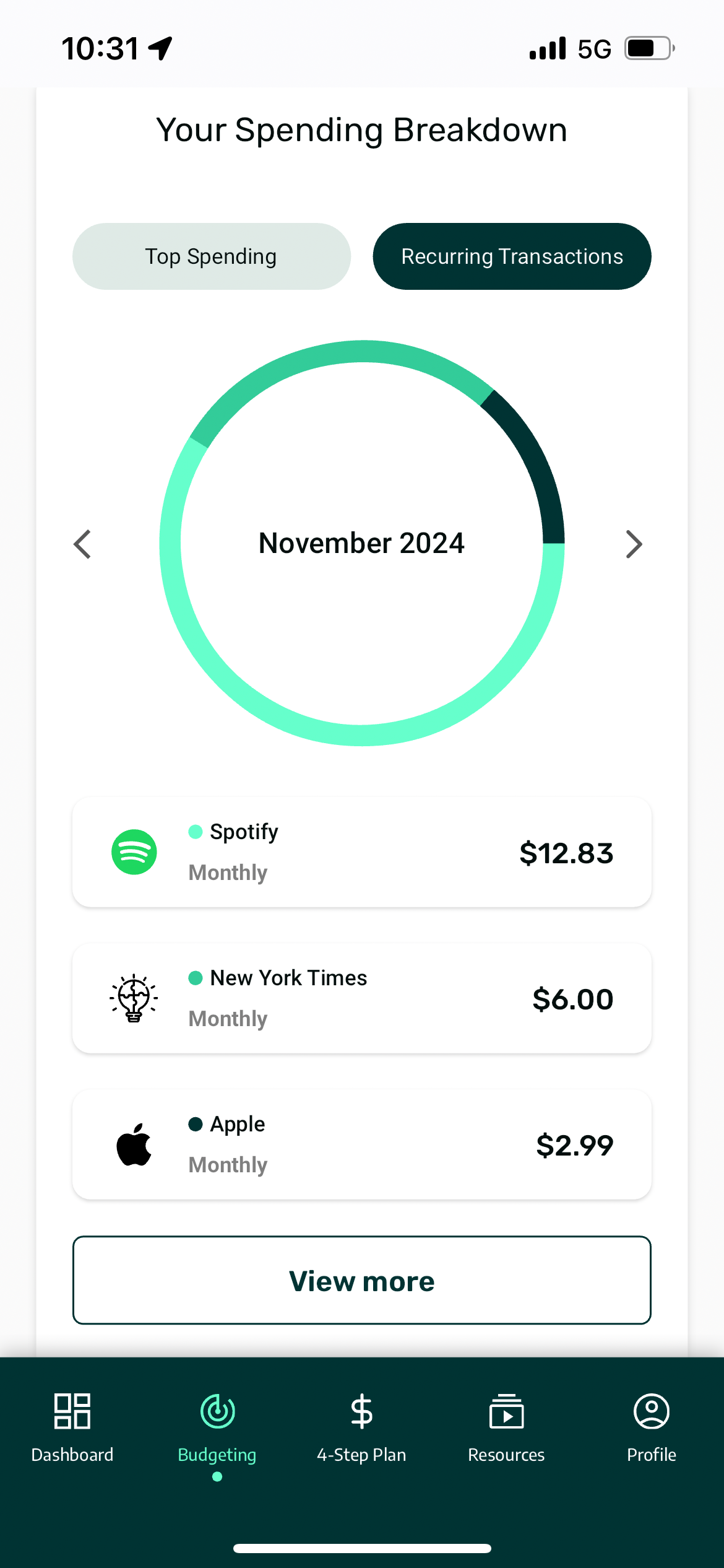 The full details on your recurring transactions can be viewed in your spending breakdown in the budgeting section.